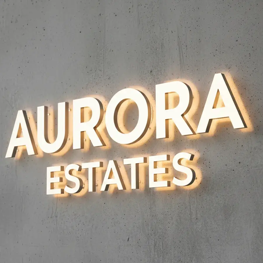 Fabricated from aluminum with a directional brushed finish, these letters emphasize material texture while minimizing surface glare. Rear-mounted LED modules project light outward from behind the letters, creating a defined halo that outlines each form without illuminating the face.