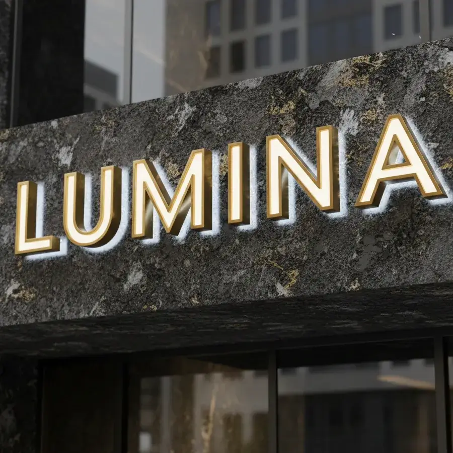 This layered lighting approach highlights both form and finish, making it well suited for high-visibility brand signage, boutique storefronts, and interior installations where metallic detail and depth are equally important.