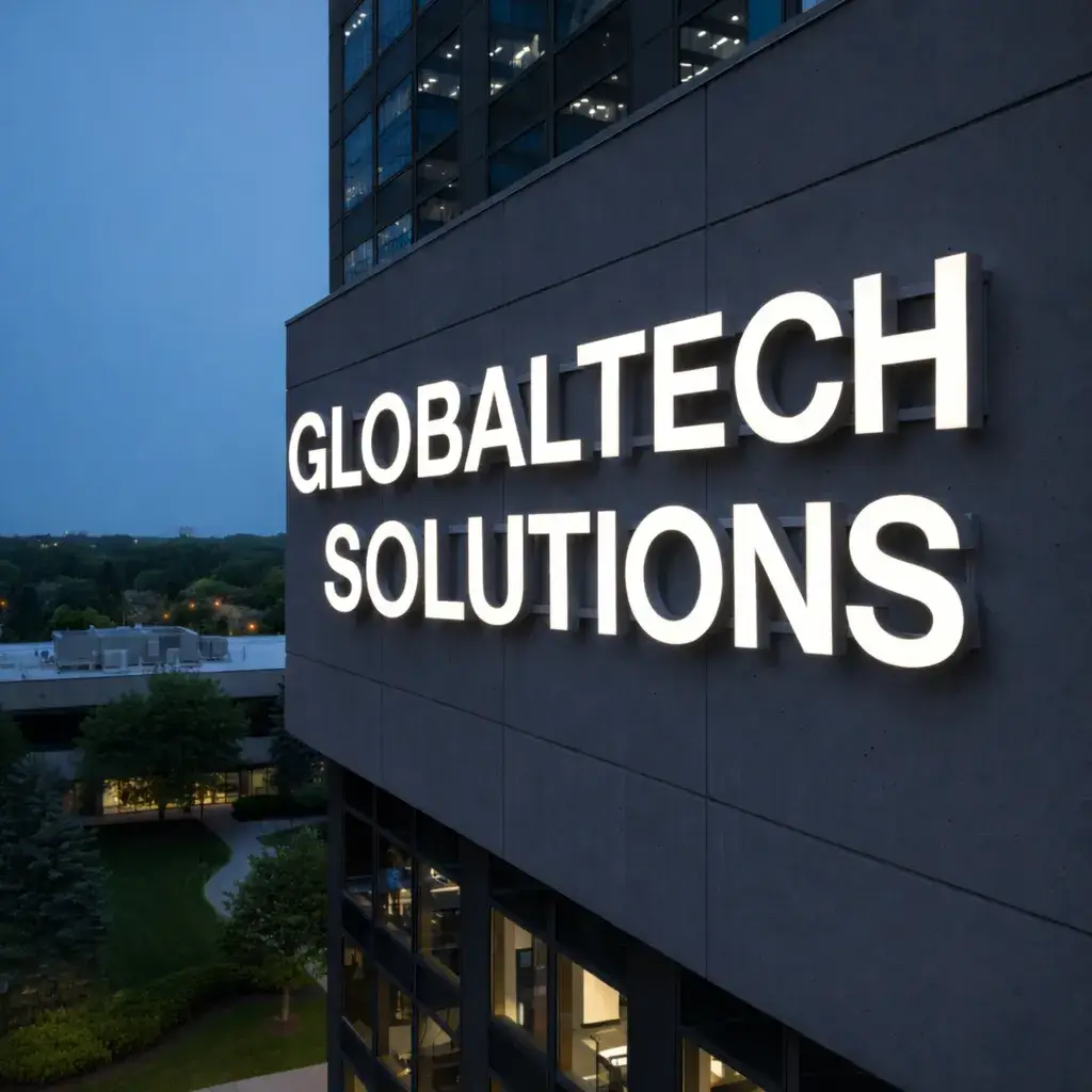 Constructed with mirror-finish metal surfaces that reflect the surrounding environment, these letters pair a highly polished exterior with controlled front illumination. Light passes cleanly through the face to define the letterforms, while the reflective body adds depth and visual movement as viewing angles change.